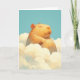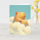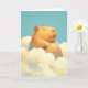 Cette carte de voeux fantaisiste présente un adorable capybara flottant joyeusement parmi des nuages doux avec un sourire serein, créant une scène onirique et apaisante. Parfait pour tous ceux qui aiment les animaux mignons ou apprécient une touche de joie et de tranquillité dans leur journée, cette charmante illustration capture l'expression du contenu du capybara qui dérive dans un ciel paisible. Idéal pour les anniversaires, penser à vous, ou juste pour répandre un peu de bonheur, cette carte apporte un doux rappel pour se détendre et profiter des plaisirs simples de la vie.