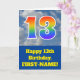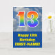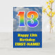 L'avant de cette amusante carte de voeux de 13ème anniversaire présente une représentation ciel bleu nuageux, ainsi que le numéro "13" avec un spectre arc-en-ciel multicolore comme motif dégradé. L'avant comporte également un message d'anniversaire, y compris un nom de destinataire customisé. L'intérieur comporte un message de voeux d'anniversaire personnalisé, ou peut-être pourrait-il être effacé et laissé vide si un message doit être écrit à la main à la place. Une carte d'anniversaire personnalisable comme celle-ci pourrait être une façon amusante d'envoyer des voeux d'anniversaire à quelqu'un qui célèbre son treizième anniversaire. [~Z0000370]