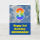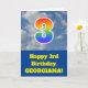L'avant de cette amusante carte de voeux de 3ème anniversaire présente une représentation ciel bleu nuageux, ainsi que le numéro "3" avec un spectre arc-en-ciel multicolore comme motif dégradé. L'avant comporte également un message de voeux d'anniversaire, y compris un nom de destinataire personnalisé. L'intérieur comporte un message de voeux d'anniversaire personnalisé, ou peut-être pourrait-il être effacé et laissé vide si un message doit être écrit à la main à la place. Une carte d’anniversaire personnalisable comme celle-ci pourrait être une façon amusante d’envoyer un message pour célébrer le troisième anniversaire de quelqu’un. [~Z0000370]