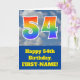 L'avant de cette amusante carte de voeux de 54ème anniversaire de conception comprend une représentation d'un ciel bleu avec des nuages, ainsi que le numéro "54" ayant un spectre arc-en-ciel multicolore comme un dégradé look. L'avant comporte également un message d'anniversaire, y compris un nom de destinataire customisé. L'intérieur comporte un message de voeux d'anniversaire personnalisé, ou peut-être pourrait-il être effacé et laissé vide si un message doit être écrit à la main à la place. Une carte d'anniversaire personnalisable comme celle-ci pourrait être une façon amusante d'envoyer des voeux d'anniversaire à quelqu'un qui célèbre son cinquante-quatrième anniversaire. [~Z0000370]