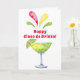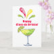 Cette carte Cinco de Mayo ludique présente une aquarelle avec une margarita de citron vert festive et le dicton "Happy Cinco de Drinko." A l'intérieur, on boit une margarita. Les couleurs sont rouge, vert et jaune.