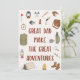 Célébrez l'esprit d'aventure de papa avec notre carte de citation de camping pour la fête des pères ! Elle comporte du matériel de camping et une citation sincère : "Un excellent papa crée de grandes aventures !" Parfait pour les papas qui aiment l'extérieur le jour de la fête des pères !