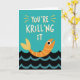 Célébrez le succès ou le travail acharné de quelqu'un avec cette carte ludique "Vous faites un mal krill" ! Avec une illustration joyeuse de krill sur fond de vagues océaniques, ce design plein de jeux de mots est parfait pour envoyer des encouragements, des félicitations ou simplement un coup de pouce amusant. Idéal pour les amateurs de vie marine, les passionnés d'océan ou quiconque apprécie un bon jeu de mots. Disponible sous forme de carte de vœux imprimée ou de téléchargement numérique.