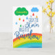 Un beau message de soutien et d'encouragement sur une carte d'arc-en-ciel fabuleuse. La citation violette indique "Plus grande est la tempête, plus brillant est l'arc-en-ciel". Fonctionne bien avec une carte de boîte de soleil de soutien contre le cancer, un salut de distanciation sociale, ou simplement comme une carte pour penser à vous.