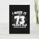 Ce design drôle de 73e anniversaire fait un cadeau humoristique sarcastique ou une nouveauté pour un thème d'anniversaire de 73 ans ou une fête surprise de 73e anniversaire ! Caractéristiques "J'ai atteint 73 ans... Rien ne me fait peur" mème drôle de 73e anniversaire qui fera beaucoup rire la famille, les amis, les invités à la fête et le garçon ou la fille qui fête son anniversaire aussi !