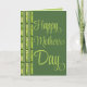 Célébrez Maman avec cette belle carte de fête des Mères dessinée à la main dans des tons verts doux et terreux. Le devant présente une écriture élégante qui dit « Joyeuse fête des Mères » dans une teinte vert clair, qui se détache magnifiquement sur le fond vert olive riche.