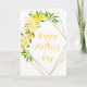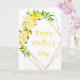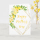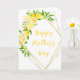 Cette carte joyeuse et fantaisiste de fête des mères peut être personnalisée avec un nom ou un titre comme maman, mama, etc. Le design présente des citrons et feuillages aquarelles sur un cadre géométrique doré. Le texte combine des polices de caractères manuscrites et serif pour un look élégant et moderne.