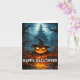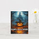 Cette carte d'Halloween présente une sinistre maison hantée gardée par un citrouille. N'hésitez pas à modifier le texte pour rendre cette carte de voeux personnelle et unique.