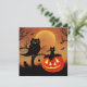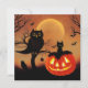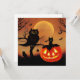 Carte Citrouille d'Halloween, hibou et chat la nuit.