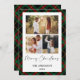 Cette carte de Noël intemporelle présente une bordure rouge, verte et noire en tartan encadrant trois photos de famille personnalisables. L'élégant script "Joyeux Noël" et le nom de famille personnalisé avec l'année en font un moyen sincère de partager les salutations de vacances. Parfait pour les familles qui souhaitent allier tradition et collage photo moderne, cette carte ajoute chaleur et charme à votre saison de vacances.