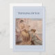 Une carte douce et élégante, dans le style d'un musée, issue de ma série Re·Generation — qui ravive des œuvres d'art patrimoniales issues de mes archives familiales et les présente pour aujourd'hui. Un encadrement en carton mat bleu-brume doux encadre deux figures classiques avec une lyre ; le recto porte l'inscription « Pensées pour vous ». Intérieur vierge pour votre message. Conçue à Waikanae, en Nouvelle-Zélande.