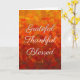 Carte de voeux Thanksgiving colorée et lumineuse avec automne, Feuilles d'automne avec la typographie Grateful Thankful Blessed, ainsi qu'un message d'amour et de voeux pieux à l'intérieur. Faites savoir à vos clients et employés combien vous appréciez leur travail et leur travail acharné, avec une carte Thanksgiving customisée et personnalisée.