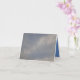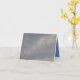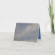 Une carte de voeux pliée avec une photo de nuages et de ciel dessus, bleu couleur/blanc à l'intérieur.
