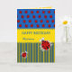 Une conception de carte d'anniversaire moderne avec un message Joyeux Anniversaire sur le devant que vous pouvez modifier si nécessaire. Le nom de l'exemple est prêt à être personnalisé - il suffit de taper dans les cases. La palette de couleurs est rouge, jaune et bleu. Il y a des coccinelles et des motifs rayés sur le devant, et une coccinelle et un motif de cœurs dispersés sur un fond jaune pâle à l'intérieur. Il y a un message à l'intérieur que vous pouvez également modifier et personnaliser : "Je vous souhaite le meilleur anniversaire qui soit !" Que vous les appeliez coccinelles ou ladybirds, elles sont des symboles de bonne chance, alors envoyez des vœux d'anniversaire chanceux à quelqu'un que vous aimez !