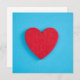 Ce design présente l'image d'un coeur rouge vif qui était à l'origine fait de feutre ; il est placé contre un arrière - plan bleu clair.