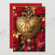 Carte Cœur doré élégant avec roses rouges et bijou