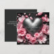 Carte Coeur métallique élégant et fleurs roses Valentine