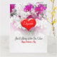 Un cœur profond rouge vif de la Saint-Valentin avec le message "Mon amour", et un texte que vous pouvez modifier pour y mettre le nom de votre Valentin, se trouve sur un fond floral rose et blanc tandis qu'en dessous se trouve le message "Tu seras toujours celui que j'aime". À l'intérieur de la carte avec un fond floral se trouve un cœur avec les mots "Tout mon amour" et un texte prêt à être modifié pour y mettre votre nom, il y a beaucoup d'espace en dessous pour que vous puissiez écrire votre message manuscrit personnel.