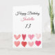 Cute rose Diverse Watercolor Hearts 13e anniversaire, un design d'anniversaire mignon fait pour toute petite-fille. Si vous cherchez de jolies cartes d'anniversaire de petite-fille, des cartes d'anniversaire d'adolescent ou des cartes d'anniversaire de treizième, celle-ci est pour vous. Le design comporte quelques coeurs d'aquarelle mignonnes, quelque chose d'attrayant et beau, alors n'hésitez pas à le personnaliser afin de faire votre propre carte d'anniversaire. Si vous avez un problème pour customiser le modèle, n'hésitez pas à envoyer un message au concepteur :)