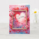 Des cœurs et des fleurs roses et rouges sont partout autour d'un cadre en bois sur cette carte de Saint-Valentin douce et romantique.