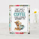 This playful card features an adorable camel holding a cozy mug of coffee alongside the humorous quote I don’t have a problem with coffee I have a problem without it. Perfect for coffee lovers, caffeine fueled friends, coworkers, or anyone who truly understands the struggle of life before their first cup.