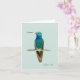 Carte pour toutes occasions représentant un colibri à gorge bleue peint à la gouache. L'intérieur est laissé vide pour votre propre message manuscrit.