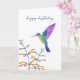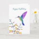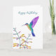 Carte d'anniversaire représentant un colibri et des fleurs peints à la main. L'intérieur est laissé vide pour votre propre message manuscrit.