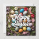 Cette carte de vacances créative présente un collage réalisé à partir de divers oeufs colorés de Pâques. N'hésitez pas à customiser le texte pour rendre cette carte personnelle et vraiment unique.
