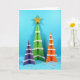 The card shows three handmade paper trees in bright colors like lime green, purple, and orange, each with unique designs 🎄. The biggest tree has a shiny golden star on top that sparkles, while the purple and orange trees have white garlands and silver studs for extra decoration. The background is a calm light blue, making the trees stand out. Small glittery baubles and sequins on the blue surface look like falling snow or ornaments 🎁. The trees are arranged differently for a cool, not symmetrical look, making the card interesting to look at. The colors and designs on the card feel new but also classic, making it perfect for the holiday season 🎅🏼. This card spreads holiday cheer and shows off how creativity can make something special out of simple things. Enjoy sending this card to make someone's day merry and bright!