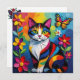 Carte Colorful Paper Cat, Flowers and Butterflies