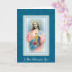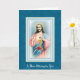 Ceci est une belle image traditionnelle du Sacré-Cœur de Jésus avec un fond en damas bleu. Une carte de messe (également connue sous le nom de carte d'intention de messe, carte commémorative ou carte de souvenir), est une carte de vœux remise à quelqu'un pour leur faire savoir que leur intention, ou celle d'un être cher décédé, sera rappelée et priée lors de la Sainte Messe.