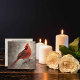 Présentant une carte de sympathie "In Memory Of", un mémorial sincère, avec un cardinal rouge frappant et un beau poème. Vous pouvez personnaliser cette carte, en ajoutant vos propres mots significatifs au verso pour votre être cher. C’est une façon significative d’offrir confort et gratitude express en honorant des souvenirs chéris.