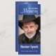 Cette carte de souvenir photo signet modifiable présente une photo d'un homme (vous remplacerez votre propre photo de votre être aimé ici) et un message ci-dessus. Ci-dessous, est le nom et les dates de naissance et de décès de la personne. Sur le dos est un verset. Le texte des deux côtés est modifiable, alors allez-y et changez les messages et les informations ainsi que le style, la taille et la couleur de la police. Le texte et la photo sont placés contre un arrière - plan bleu foncé avec des rayons de lumière venant d'en haut. C'est parfait pour des funérailles ou pour une célébration de la vie. Profitez de votre nouvelle carte commémorative Editable Photo Rays of Light !