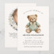 Une carte de condoléances "en souvenir affectueux" avec un ours en peluche aquarellé représentant un enfant en pyjama vert menthe doux. Ce design doux est parfait pour honorer la vie d'un enfant bien-aimé. L'image chaleureuse est entourée d'une écriture délicate qui dit "En souvenir affectueux de", créant un hommage réconfortant et sincère. La carte est conçue pour offrir du réconfort et des souvenirs pendant une période difficile, avec suffisamment d'espace pour les détails personnels et les messages.
