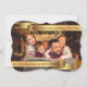 Un design moderne de carte de Noël avec votre photo de famille remplissant le visage de la carte et des bandes d'or tenant votre texte en haut et en bas.