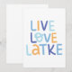 Célébrez la joie de Hanukkah avec cette conception colorée « Live Love Latke ». Avec des couleurs vives et une typographie ludique, ce graphique est parfait pour une variété de produits, de la décoration intérieure aux cadeaux. Ajoutez une touche d'esprit de fête et de délice à votre espace avec cette conception amusante et festive.