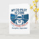 "Cette conception de l'intelligence artificielle comprend un copilote futuriste aux commandes avec la citation "Mon copilote est du code". Parfait pour les codeurs, les passionnés d'IA et les amateurs de technologie qui adoptent le pilotage automatique de l'IA, les mises à niveau et l'innovation en apprentissage machine."