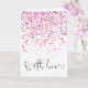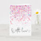 Carte d'anniversaire colorée et joyeuse avec confettis rose, bleu, jaune, lilas. Les mots "avec amour" sont écrits dans un joli coeur embelli police au bas de la carte, ce qui le rend spécial.