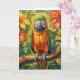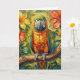 A sweet card to say congratulations on your new parrot or bird! On the front is an impasto painting style parrot and tropical flowers.