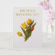 Designed in Waikanae, New Zealand, this card showcases warm yellow and red tulips on an ivory ground, paired with subtle gold-tone text reading “On Your Wedding Day.”
