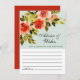 Elégante carte de conseil et de souhaits de mariage avec roses d'aquarelle rouge, feuillage vert sur un arrière - plan menthe+vert.