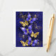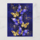 Composition des luxueux papillons saphir et bijoux en or sur arrière - plan bleu texturé.