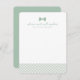 Conçu pour coordonner avec la collection de baby showers Lea Delaveris Design cravate arc vert sauge en vichy, cet encart d'invitation ou carte d'activité de baby shower est parfait pour les invités à partager des conseils et des voeux pour les nouveaux parents et bébé. Le texte vert doux "conseil et voeux" peut être édité, tout comme le gris "pour les nouveaux parents" (personnalisez-le avec leur nom). Il comprend également un motif vert clair en vichy en bas et un motif à pois à sauge à l'arrière qui correspond à la proue à l'avant.