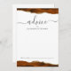 This elegant design features top and bottom borders of burnt orange watercolor agate trimmed with gold faux glitter. The word "advice" appears in handwriting calligraphy script with flourishes at the beginning and end. Personalize with the names of the newlyweds in charcoal gray copperplate font. A line at the bottom provides space for guests to sign their advice and wishes for the couple.