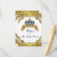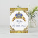 Carte de vœux pour bébé avec une belle couronne royale bleue et or et une bannière sur un fond doré élégant et riche. Vous pouvez personnaliser cette carte de vœux pour bébé pour votre événement en ajoutant simplement vos informations dans le style de police et la couleur de votre choix. Vous pouvez également ajouter une couleur de fond. Demandez à vos invités de les remplir et de les conserver comme souvenir de bébé.
