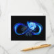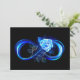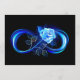 Luminous infinity symbol with glowing, beautiful, lushly blooming rose made of blue flames on black background.
