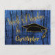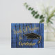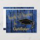 Donnez à vos invités à votre fête de remise de diplômes l'occasion d'express de leurs paroles de sagesse ou de conseils pour le diplômé. Motif en bois rustique bleu élégant avec capuchon de graduation et saveur. Créez votre propre carte de voeux de réussite de graduation monogramme simplement en ajoutant votre nom de grade.