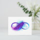 Symbole de l'infini avec une belle plume peinte en couleurs vives violettes et bleues sur fond blanc.