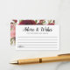 Cartes de conseils de mariage rustiques élégants avec un fond blanc uni qui peut être changé en n'importe quelle couleur, des lignes pour écrire vos mots de sagesse, et un ensemble de fleurs de couleur marsala rouge, bordeaux et rose blush en aquarelle au verso.