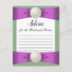 Demandez des conseils de mariage à vos amis et votre famille avec style avec quelques belles cartes de conseils personnalisées. Cette carte de notes avec une perle de charme et un ruban violet lilas sur un arrière - plan vert sauge serein peut être distribuée à vos invités lors de votre journée spéciale. Bien que cette carte de conseil soit une touche merveilleuse à toute saison, les couleurs florale lilas et sage et la perle brillante s'adaptent parfaitement à un mariage de printemps. Les noms de la mariée et du marié peuvent être élégamment affichés à l'avant de la carte. Assurez-vous d'inclure également les monogrammes de la mariée et du marié au dos de la carte.